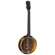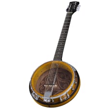 This Celtic 6-String Banjo has the standard 25-1/2″ scale of a guitar, with the traditional resonator of a banjo. While its design is geared towards modern Celtic jams, the attack produced by the transparent head will whisk you back to pickin’ on grandpa’s porch. For the experimentalists, use a standard EADGBE tuning for a uniquely accented guitar tone, or open tuning for punctuated resonant drones. Case sold separately.