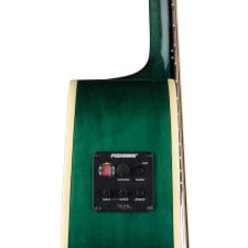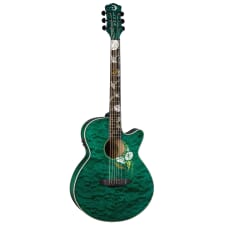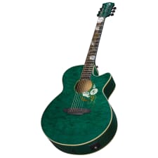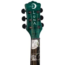 The Moonflower is an apt addition to Luna’s Flora series, as the Moonflower’s large, white trumpet shaped blooms start to open at night under the moon. A sphinx moth poises at the edge of the moonflower’s bloom at the sound hole while the same flowers twine down the fingerboard. Leaves and flowers strategically mark the 3rd, 5th, 7th, 9th, 12th, 15th, 17th, 19th and 21st frets. Plugged in, the state-of-the-art Fishman preamp tuner maintains the intimate and natural acoustic tonal quality of this fine instrument. The Fishman Presys II provides a 2-band EQ with volume control, built-in tuner, and phase switch to fight feedback. Case sold separately.