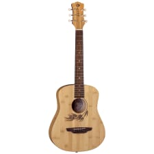 Our Safari Bamboo guitar is a 3/4 dreadnought travel acoustic featuring a bamboo top, back, and sides, as well as a bamboo leaf laser etching around the soundhole. While it is a compact guitar, Luna Safari Guitars deliver full size tone and tonal voice that belie its small size. Beautifully handcrafted from bamboo, the Safari boasts quality construction to match its sound and stunning design. Whether you are looking for a guitar for impromptu gigs, as a student guitar or for song writing on the go, the Luna Safari Series are perfect for a variety of players and needs. Branded travel bag included.