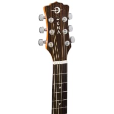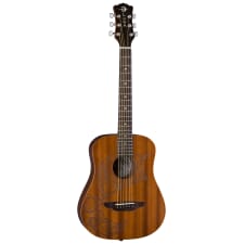 The Safari Tattoo Travel Guitar takes its design from traditional Hawaiian body ornamentation. Those designs were monochromatic with strongly geometric patterns, and many shapes and symbols inspired by the natural island world: stones, waves, fish, sharks, turtles, rain, sun, birds. This one features safari theme etchings on a resonant all-mahogany body and top. The Safari Tattoo 3/4s the size of a dreadnought acoustic, light on your back and wallet! While it is a compact guitar, Luna Safari guitars deliver full size tone and tonal voice that belie its small size. Beautifully handcrafted from Eastern Mahogany, this guitar boasts quality construction to match its sound and stunning design. Whether looking for a guitar for impromptu gigs, younger players as a student guitar or songwriting on the go, the Luna Safari Series are perfect for a variety of players and needs. Branded travel bag included. Join the Luna Tribe!
