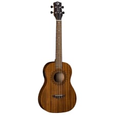 Its time to take your baritone ukulele talents on the big stage! Yes, an affordable baritone uke with a preamp is possible without sacrificing our high standards in quality. Luna continues its commitment to creating quality ukes at an affordable price by welcoming a new Baritone Ukulele Acoustic / Electric to the line. Adding on to the already popular Vintage Mahogany Series, the Vintage Mahogany Baritone Electric offers a traditional baritone body, walnut bridge and fretboard, 19 scale length and beautiful pearl triangle inlays. The signature laser-etched rosette design around the sound hole is just the right touch of design, married with its traditional brown color. Easily amplify your sound and dial it in quickly using the onboard Luna UK-T2 preamp with onboard tuner. Expect warm deep bass sound from the all eastern mahogany larger body and keep that rhythm in tune with the sturdy black open gear tuners. Join the Luna Tribe!